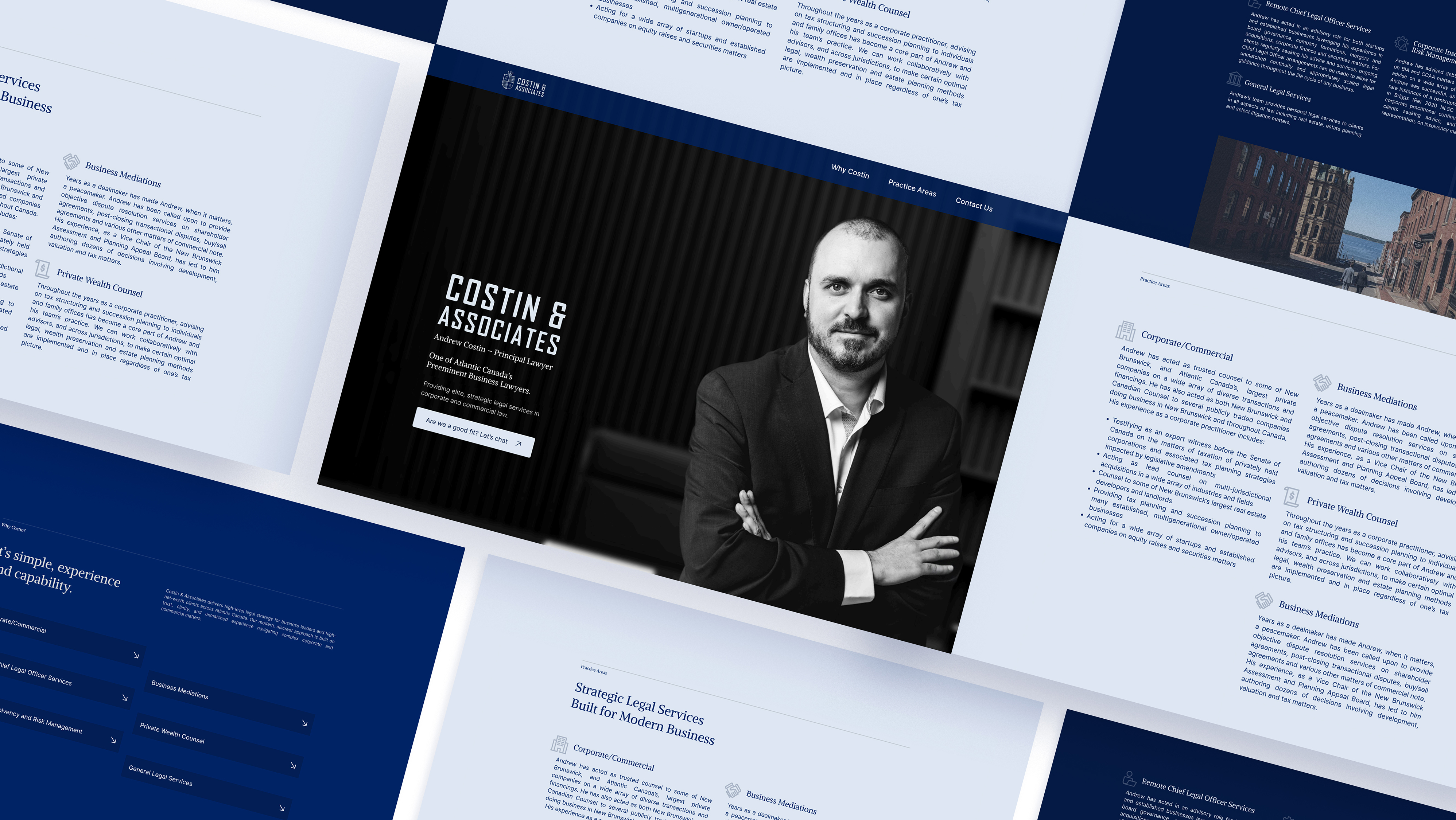 We developed a refined visual identity for Costin & Associates, including an updated logo, typography, and color palette. The goal was to strike a balance between modernity and authority while preserving a discreet, professional tone. Every design choice was made to resonate with the firm’s core audience of corporate and commercial law clients, conveying trust, stability, and sophistication. The result was a brand identity that communicates credibility and expertise, positioning the firm as a forward-thinking legal partner while maintaining the gravitas expected in high-level business law.