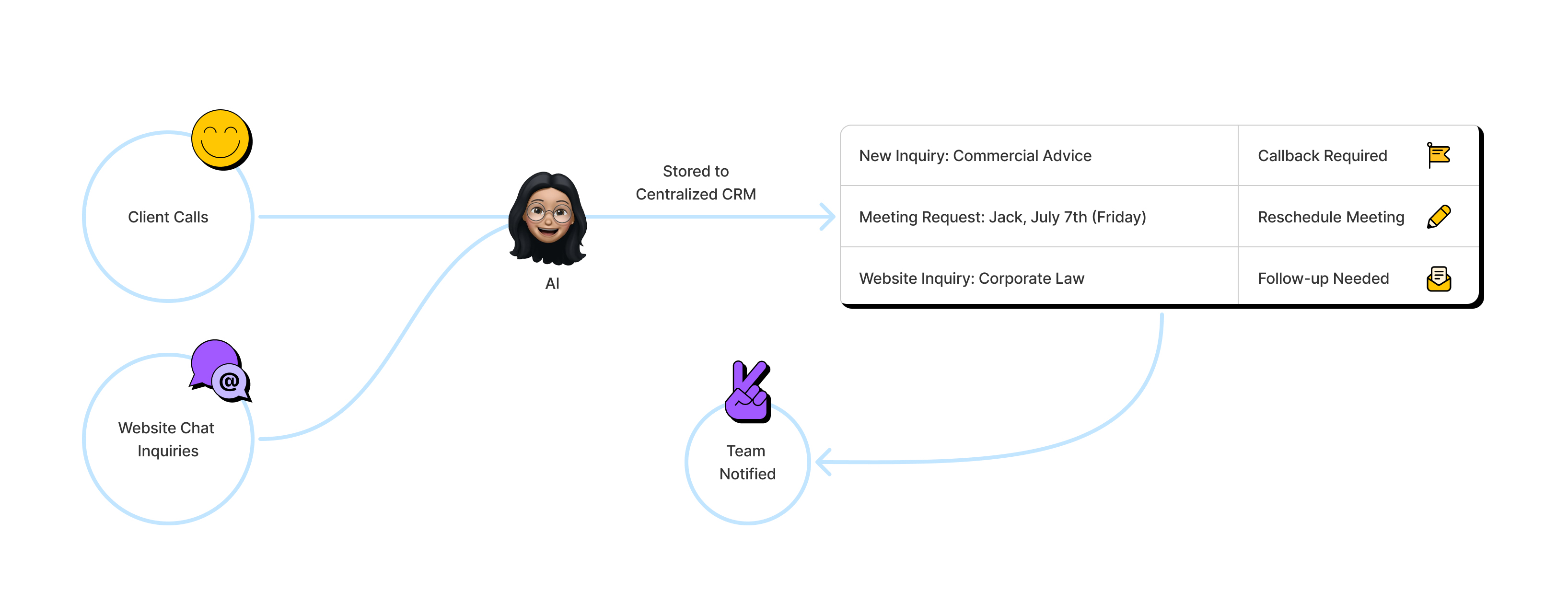 We implemented an AI-powered receptionist and website chatbot to modernize client engagement. The receptionist answers calls instantly, books and confirms appointments, and ensures no inquiry is missed, even after hours. The chatbot handles website questions, captures leads, and provides a consistent digital touchpoint. All communications flow into the firm’s CRM, where the team is notified right away, making follow-ups faster and more reliable while reducing staff workload.
